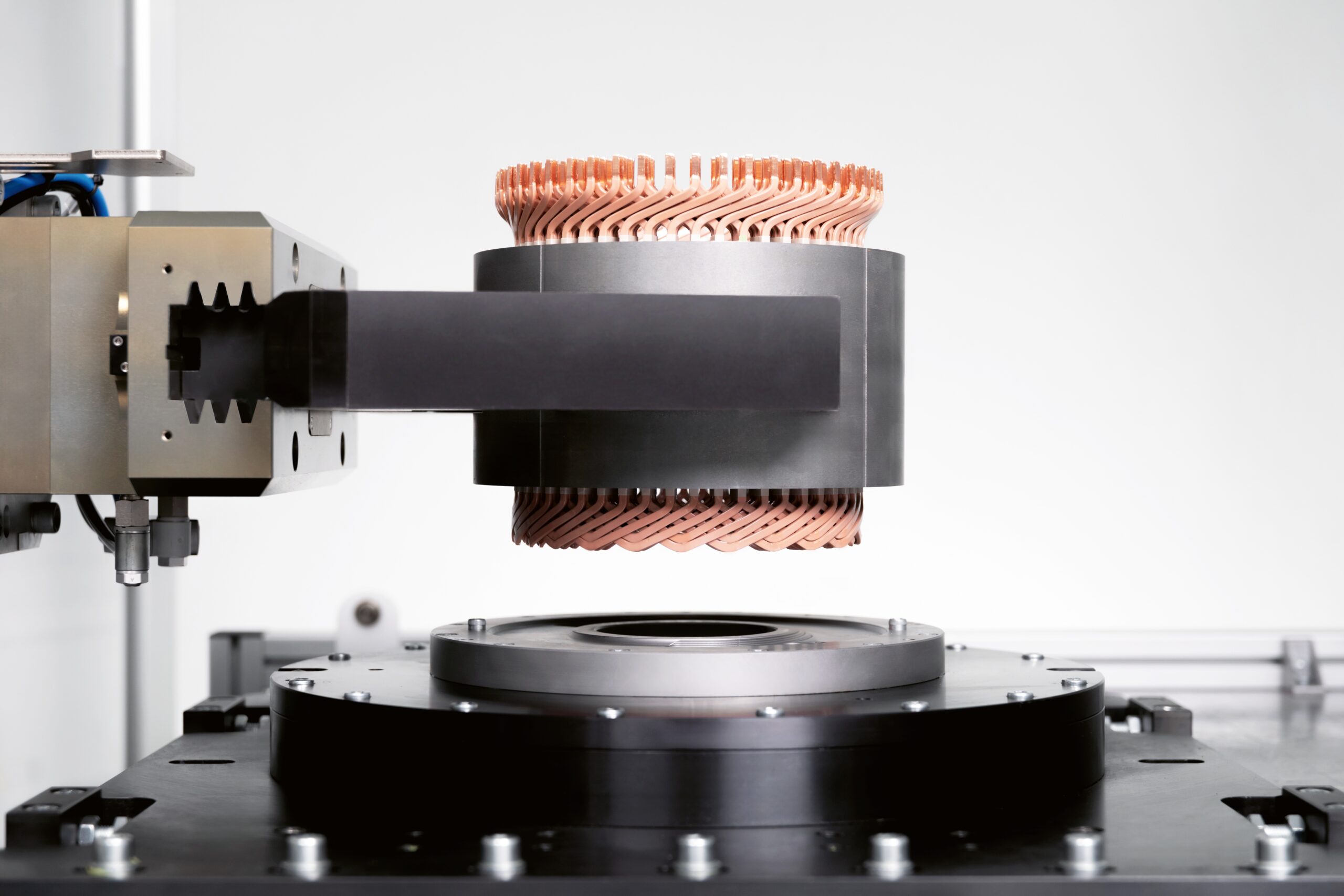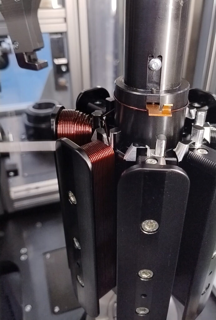 Welding has remained a critical phase in hairpin technology. Early alignment systems based on masks evolved significantly over time. In high slot-count and small-diameter applications, gripping systems replaced masking solutions. More recently, a three-effect mask has been introduced to ensure tangential and radial alignment while guaranteeing axial containment. Its reduced thickness makes it particularly suitable for very short wire leads, including so-called “minipins,” with serial production already achieving straight terminal lengths below 6 mm.