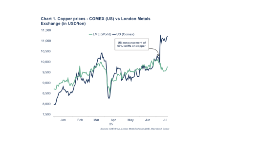 US tariffs announcement caused a 13% increase in Comex copper futures, that jumped last July to 11,290 dollars per tonne (Source: Coface)