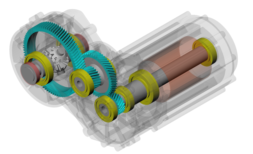 The EDU under examination is characterized by an electric motor and by a single-speed transmission with two cylindrical reduction stages (figure 1).
