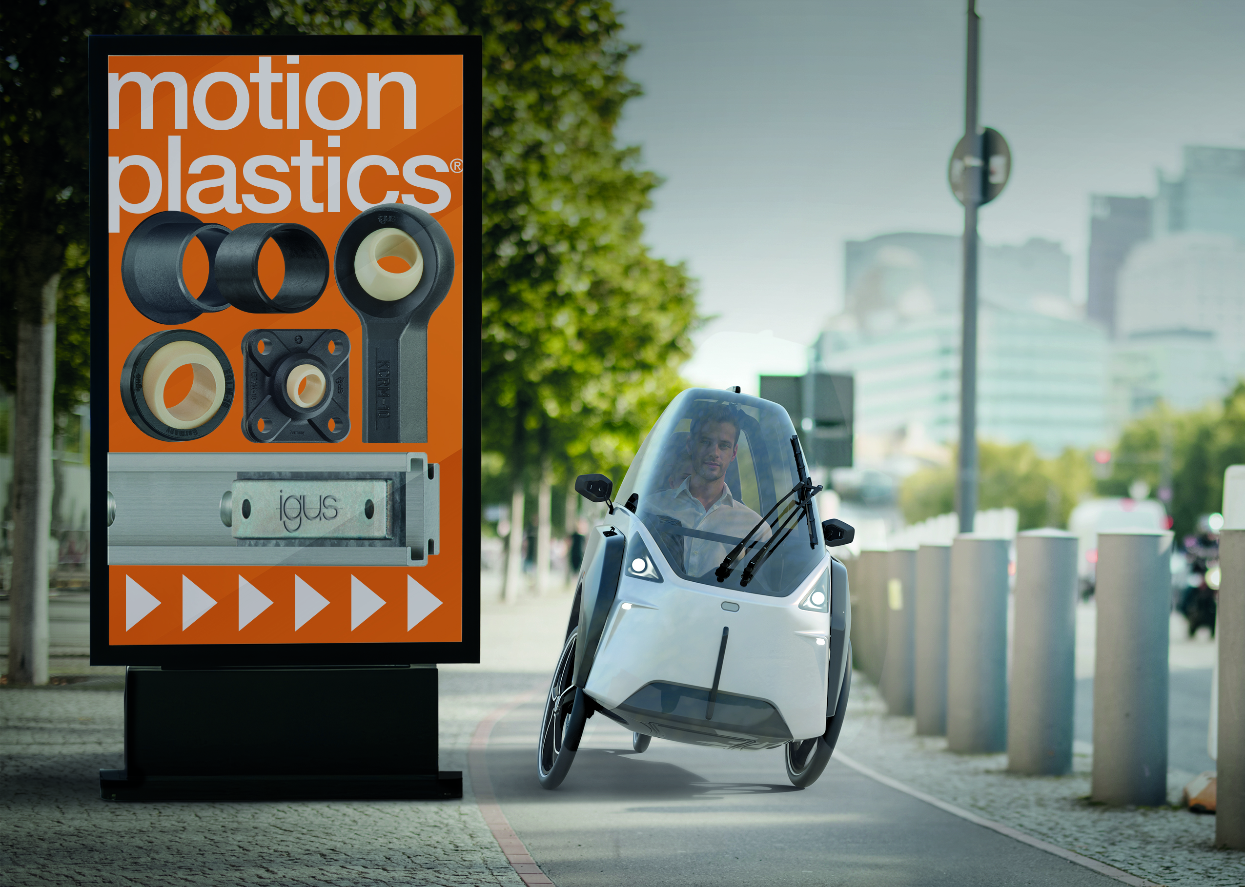 Owning a car is becoming less and less important for many young people in cities. Studies show that the proportion of pedestrians and bicycles is increasing significantly, especially in urban areas. The car as a status symbol is losing its appeal – instead, the focus is shifting to sustainable, flexible and low-maintenance mobility solutions. JetBike GmbH from Braunschweig is embracing this change and presenting a pioneering solution with the JetBike: an innovative combination of e-bike and car. To fulfil the requirements regarding sustainability and ease of maintenance, the company relies on lubrication-free polymer bearings from igus.