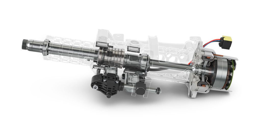The adjustable Hand Wheel Actuator transmits the steering angle via the vehicle electronics to the steering gear, while the Force Feedback Actuator generates the specific steering feel. Photo: Schaeffler